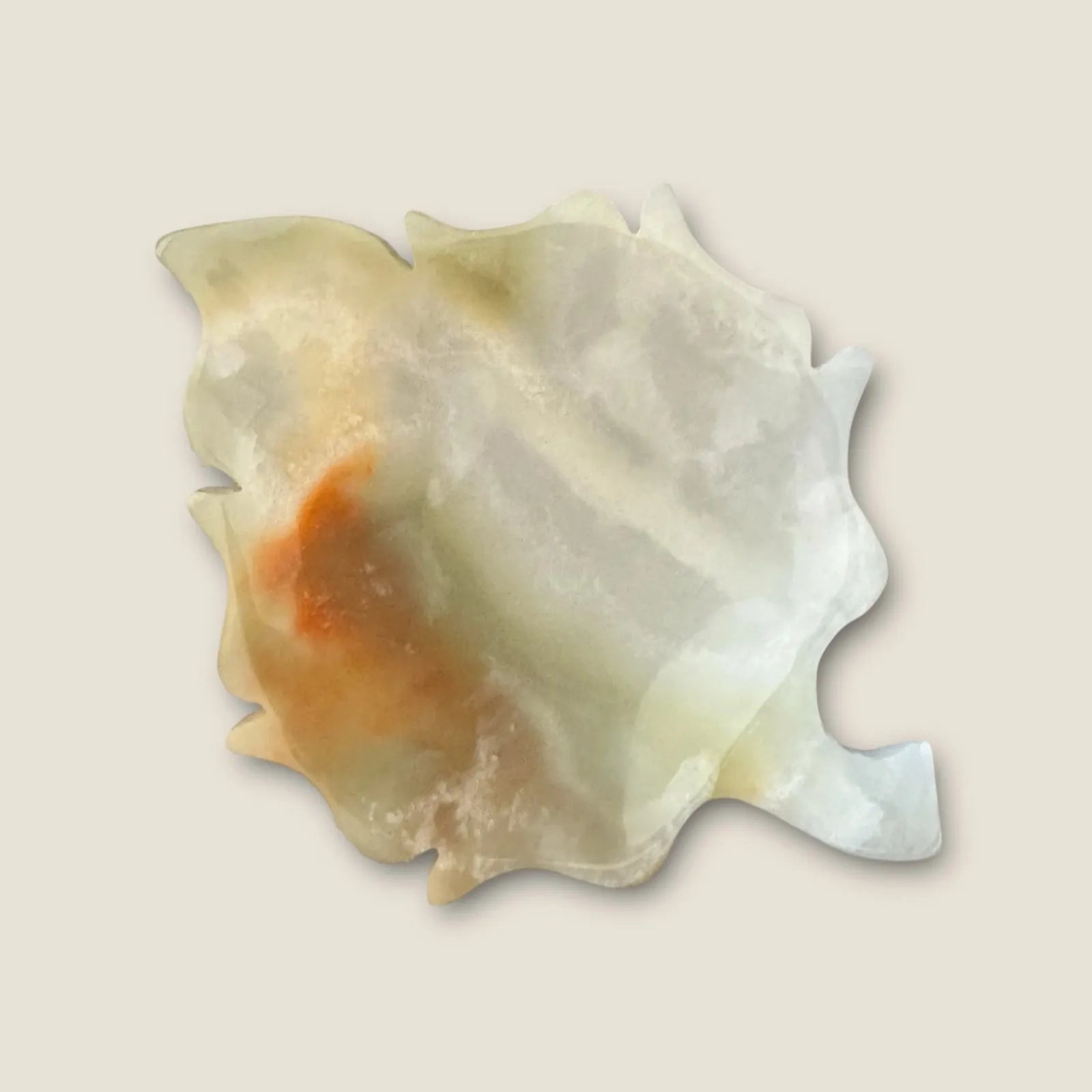 Bring nature’s elegance to your table with these leaf-shaped plates, hand-carved from stunning green onyx. The swirling tons of soft green with hints of natural veining make each piece entirely unique.